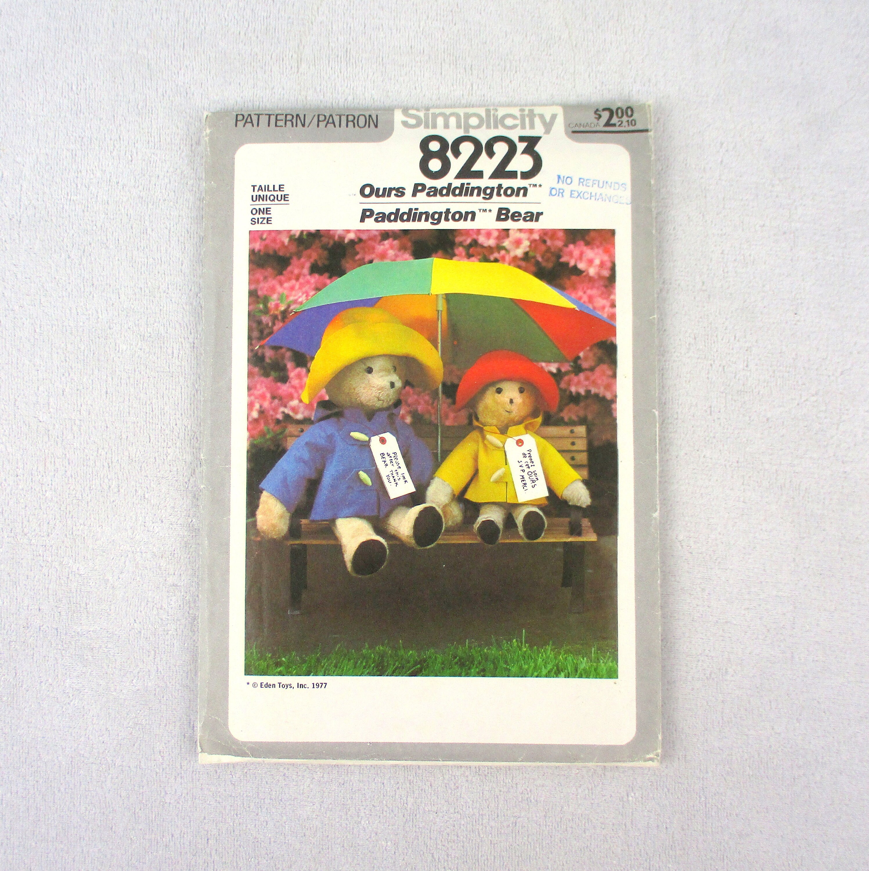 Paddington Bear Stuffed Toy Sewing Pattern Simplicity 8223 Etsy